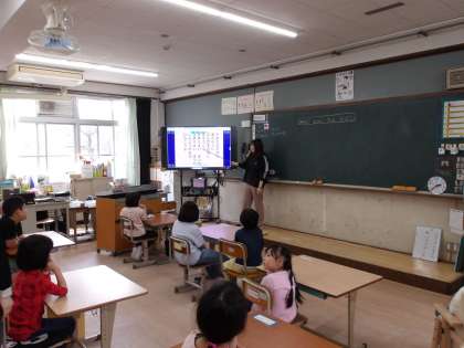 「あらしのやまって、どこかな?」「まなびのこだまって、何かな?」と、1つ1つ歌詞の意味を確認し、歌いました。
