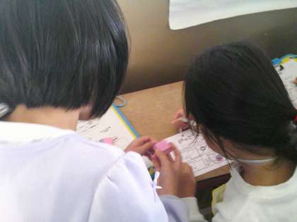2年生のお兄さんお姉さんが優しく学校を案内してくれました。