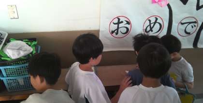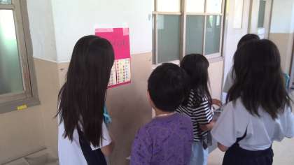 1年生のペースに合わせて、ゆっくり、ていねいに、学校を案内しました