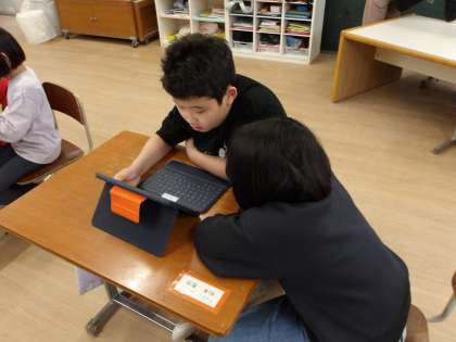 そもそも、夏野菜にはどんなものがあるのかな・・?そこで2人組グループに分かれて、今年6くみで育てたい夏野菜を調べました。