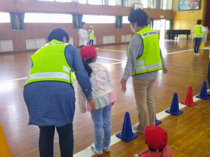 左右の確認や、車への合図をして、安全に気を付けようとする姿が見られました。