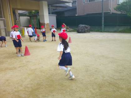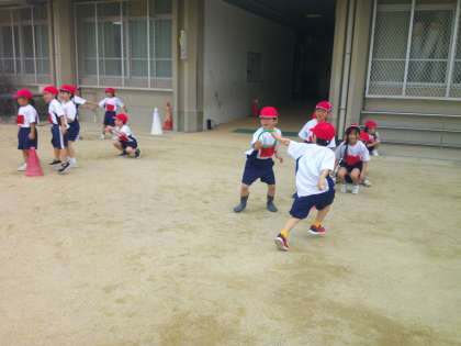 今日はリングバトンを使ってリレーをしました。