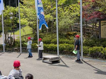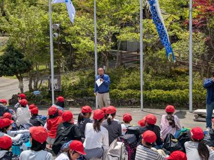 松尾小学校の旗もたなびいています。