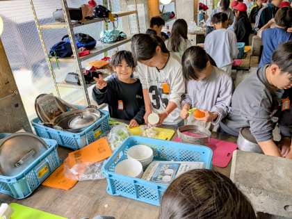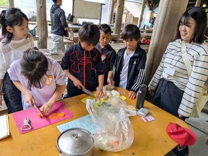野外炊事がスタート。