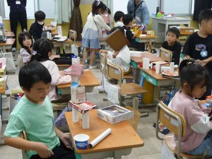 はこをならべたり つみかさねたりして いろいろなものに変身させました
