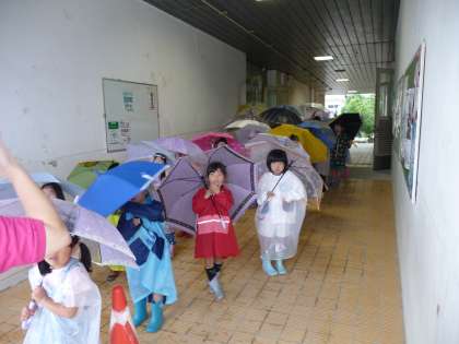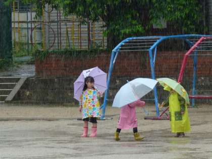 雨が降って外遊びができなくて残念ですが,雨が降った時だけできる学習があります。