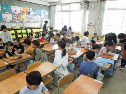今日は1年生に顔と名前を覚えてもらおうとあいさつにいきました。