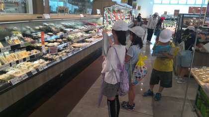 スーパーマーケットにあるくふうをみつけようと、グループで活動することができました。