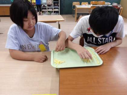 さあ、さっそく6くみでも何個なのか、トウモロコシの実の数を調べることにしました。果たして、何個あったのでしょうか??
