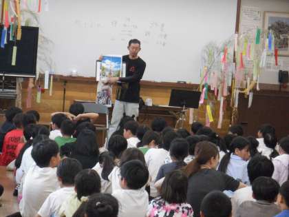 元PTA会長の谷口さんが、放下鉾にかかわっておられるので、ゲストティーチャーとお招きして、祇園祭のことについていろいろと教えていただきました。