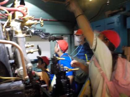 「蒸気機関車の運転台って、いっぱい機械があるね。」「0系新幹線の運転台は高いなあ。」