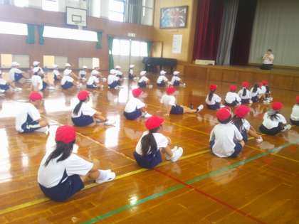 今日は、曲に合わせて、円の隊形になる練習をしました。