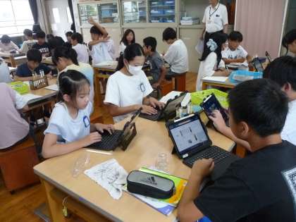鉄とアルミニュウムの2種類の金属片に,酸をかけて,状態の変化を見ます。