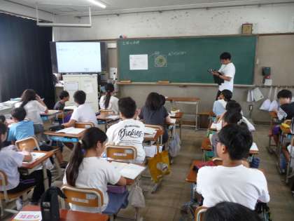 この日は,2学期になって配布された新しいiPadの機能を担任の先生から説明がありました。