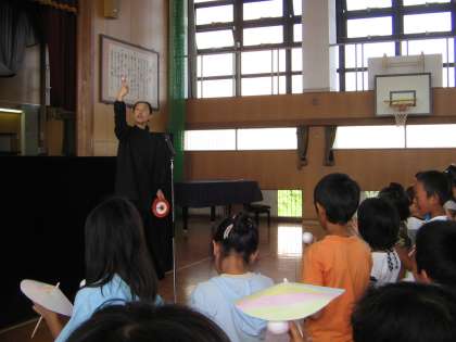 次に,子どもたちに指の動かし方や傘の持ち方などを丁寧に教えていただきました。難しい動きがとても多く,子どもたちは覚えるのに苦労していましたが,必死に頑張っていました。