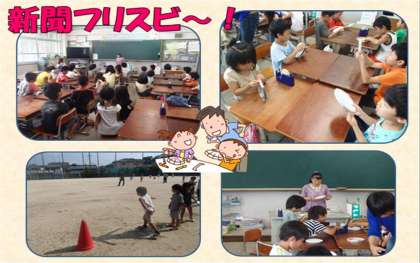 『新聞フリスビー』では,講師の先生に来ていただき,新聞を使って