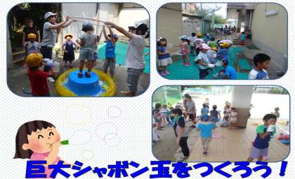 『巨大シャボン玉を作ろう』では,ビニールプールに専用のシャボン液を
