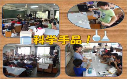 『科学手品』では,理科室で実験をしたり,ペットボトルを使った