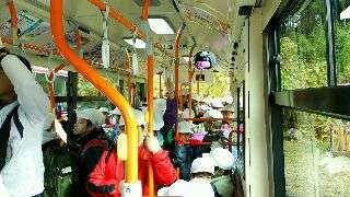 交流の森までバスで移動し、その後、登り始めます。