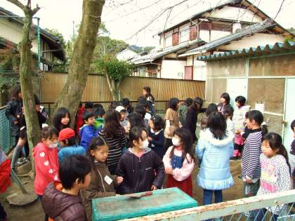 えさを食べる様子を見た子は,「かわいい・・。」とつぶやきながら,目を細めていました。