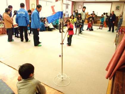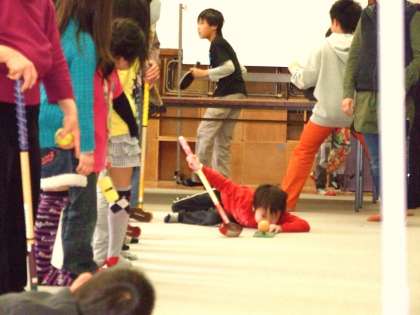 グランドゴルフを楽しんでいる下の写真の子は,芝の目を読んでいるそうです。