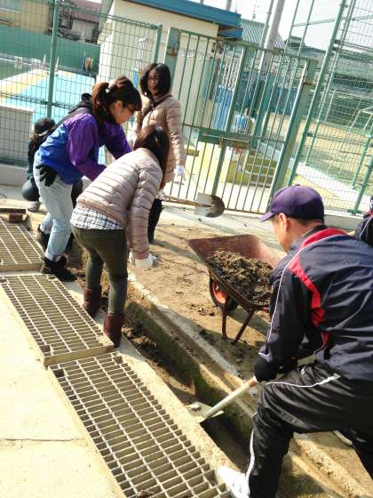 16日 日曜日の午前中に運動場や体育館等を利用している各種団体の方々による学校清掃が行われました。