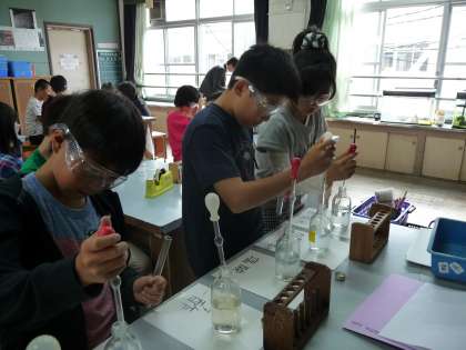 いろんなタイプの水溶液をしらべ、それぞれの特性について学習しています。