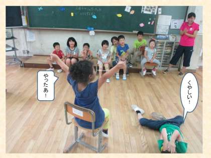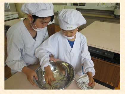 6月22日(水)に「運動会がんばったねかい」をしました。黒板を犬の折り紙などで飾り付けました。その後,家庭科室へみんなで行き,白玉粉をボウルに入れてこねました。できあがったフルーツ白玉は,給食のときのデザートにしました。調理実習の後は,教室でフルーツバスケットやいすとりゲームを楽しみました。今日のいすとりゲームは,ルールを守って最後まで気持ちよく遊べてよかったです。
