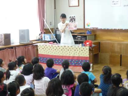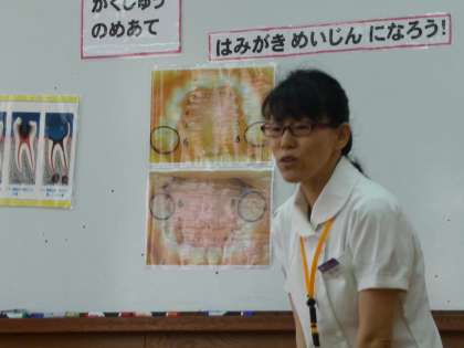 歯科衛生士さん学校に来てくださって、歯磨きのやり方を2年生に教えてくださいました。