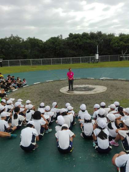 昨日から一緒に活動している桂小学校と、営火場で朝の集いを行いました。