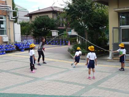 3年生は警ドロをしていたり、1年生は、先生に縄を回してあそんでいました。