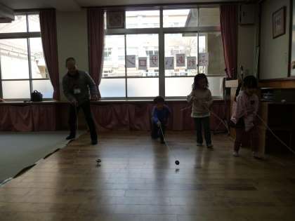 地域の方に、折り紙のおり方やコマの回し方を教わっていました。