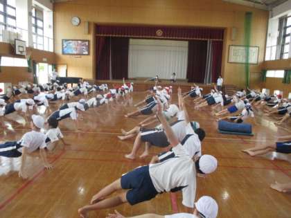 組体操では一人技の練習をしました。指先までしっかり意識しながら練習を頑張りました。