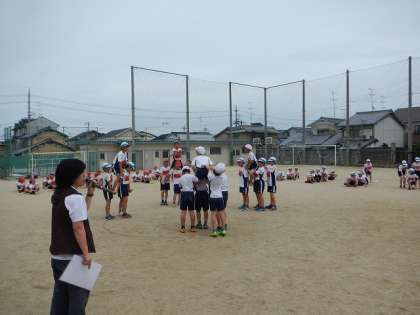 今回は運動場で騎馬戦をしました。