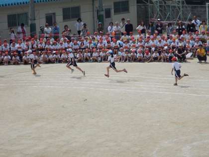 プログラム2番 5年生の「100m走」が始まりました。