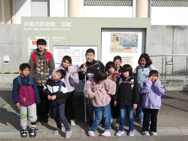 「小さな巨匠展」の会場である京都市京セラ美術館別館に着いて、まずはみんなで記念写真!
