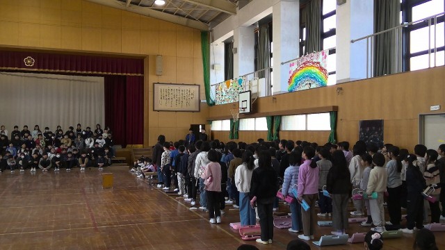 3年生は、「6年生を送る会」で、合奏「パフ」・歌「にじ」を6年生に贈りました。