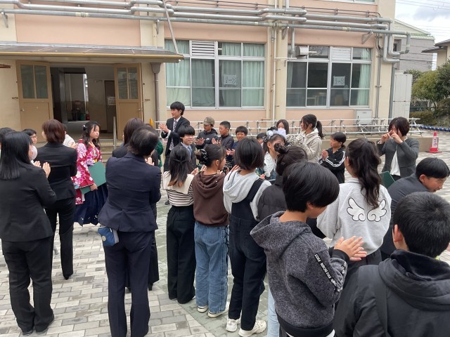 96名の卒業生たちが、五年生や保護者の方、教職員が作る花道を抜けていきます。