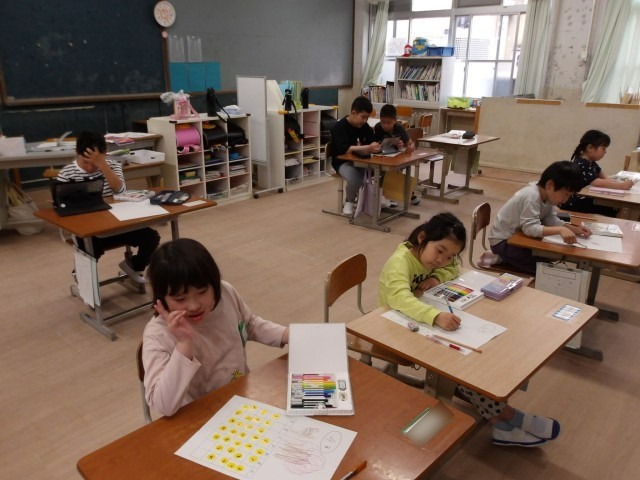 「いっぱい数字があるねえ。」と言う1年生も「今年1回目の参観日って、いつかな。」と先生に聞く6年生も一人一人、一生懸命にカレンダーづくりに取り組みました。