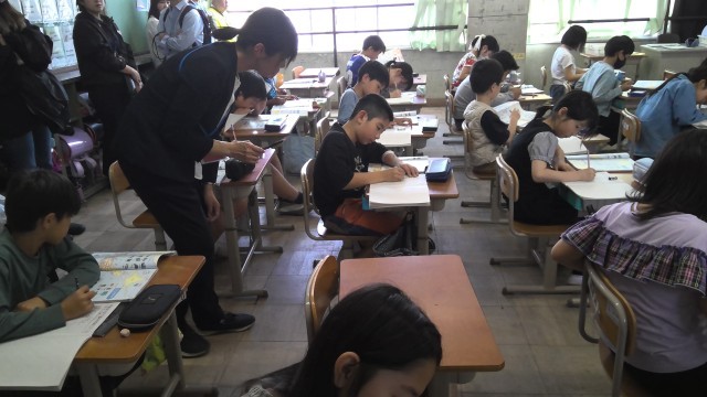 子どもたちは緊張しつつも手を挙げたり、一生懸命ノートを書いたりと頑張っていました。