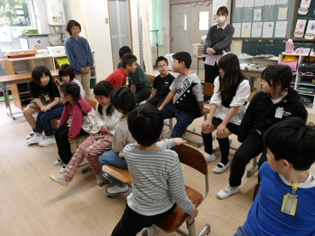 みんなで楽しく自己紹介をしたり、ダンスをしたり・・。中間休みには、みんなでかくれんぼをして楽しみました。