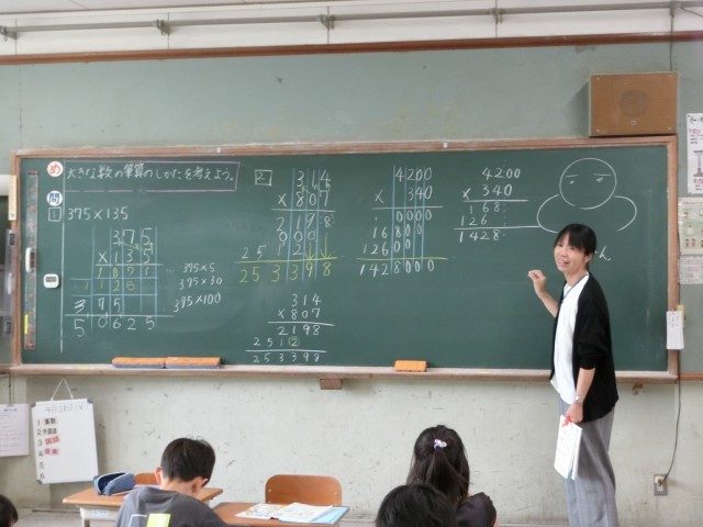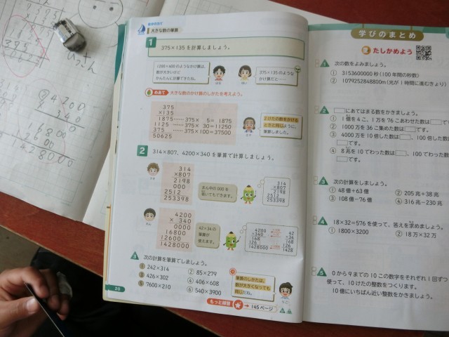 算数で大きな数のひっ算の学習をしています。