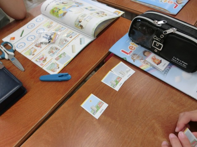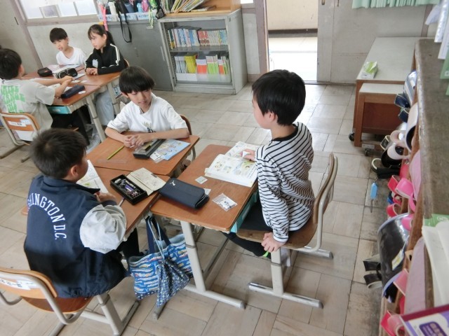 カードゲーム風にして、はれや曇りの日の言い方や天気の尋ね方を学びました。