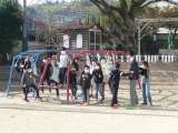 4年生は,元気に外でクリスマス会です。 サンタが鬼?で鬼ごっこをしていました。