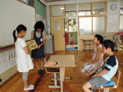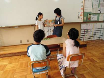 あじさい読書週間なので,朝読書に図書委員んさんが読聞かせに来てくれました。楽しい本を2冊読んでくれました。