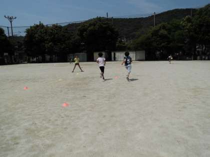 5年1組のリレー大会に参加しました。事前にタイムを計っておいて,タイムを宣言して走ります。宣言タイムの1秒差で,みんな大喜びでした。
