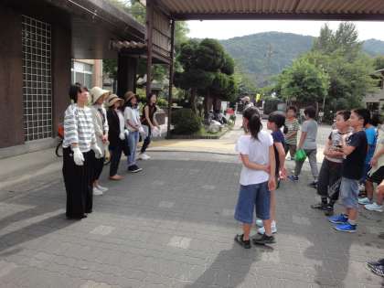 苗を植え終わってお水をたくさんあげました。少し離れてみてみると,花壇がきれいに模様替えされて夏空に映えました。最後に,力を貸してくださったPTAの方々にお礼を言いました。