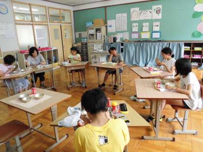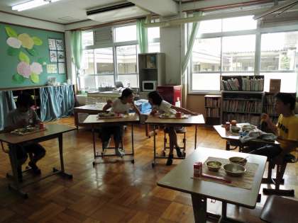 6年生があおぞら学級に来てくれました。食べながら自己紹介や修学旅行の話をしました。
