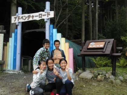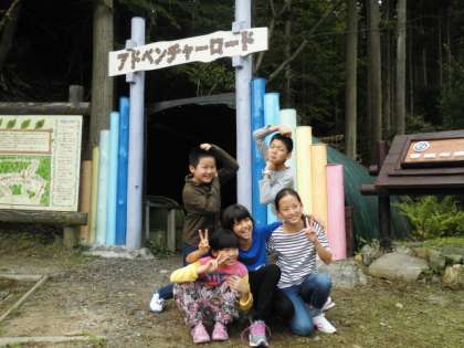 アドベンチャーワールドの前でグループごとに記念写真を撮りました。