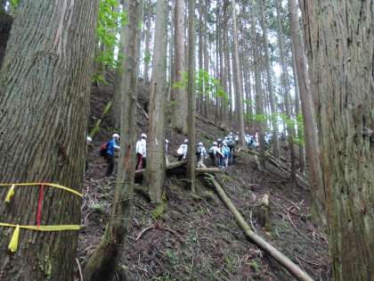 山の家から見える寺山の頂上に着くと,山の家に向かって「ヤッホー」と叫んでみましたが,本部には聞こえなかったようです。風向きがいいとちゃんと聞こえるそうです。